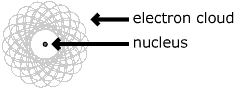 Often the atom is described like a sphere with the nucleus in the center and the electrons encircling the nucleus. The electrons take up most of the atomic space, but only