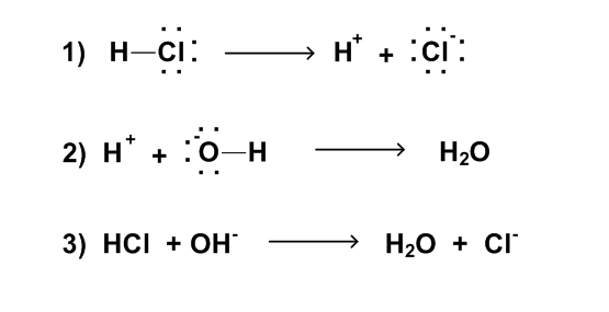 In this reaction, the breaking of an HCl bond forms a proton (electron pair acceptor). This proton then reacts with the base (electron pair donor) to form a new product. An acid-base reaction yields acids and bases as products. These new acid and bases are termed conjugates. Each acid reactant has a conjugate base product, and each base reactant has a conjugate acid product. These reactant and product pairs are termed conjugate acid-base pairs. Different acids and bases have varying strengths. The strength of these species is dependent upon several factors such as solubility, bond strength, and ion stability. The strength of an acid is expressed in terms of pH. The pH scale ranges from 1 - 14 and is unitless. A solution with a pH of 7 is neutral, below 7 is acidic, and above 7 is basic. The stronger the acid the lower the pH value, and the weaker the acid the higher the pH value. |