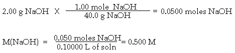 Lets look at an example. Lets say that a stock solution is prepared by adding 2.00 g of solid NaOH to a 100.00 mL volumetric flask and diluted to the mark. The concentration of this stock solution would be;
